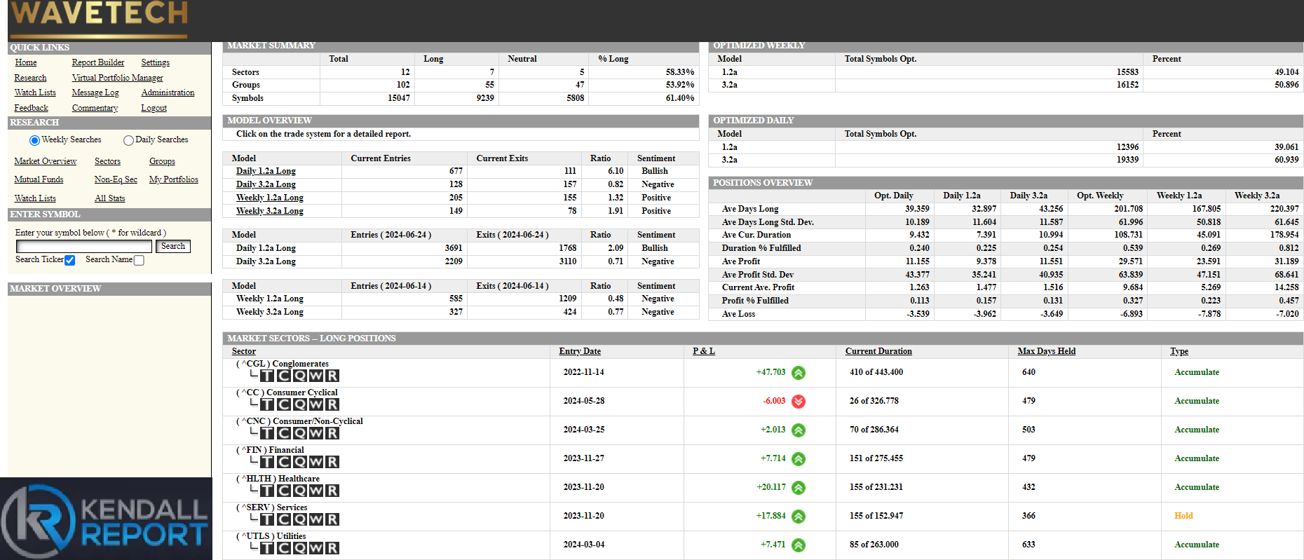 Once again, we conducted an intermediate run on our database and observed minimal changes. We saw 354 new entries compared to 233 exits, resulting in a bullish percentage of 61.40 on the intermediate database. I double-checked to ensure the database was functioning correctly because this number has remained at this level for some time. Despite the indexes reaching all-time new highs, the stocks have no significant new rotation.