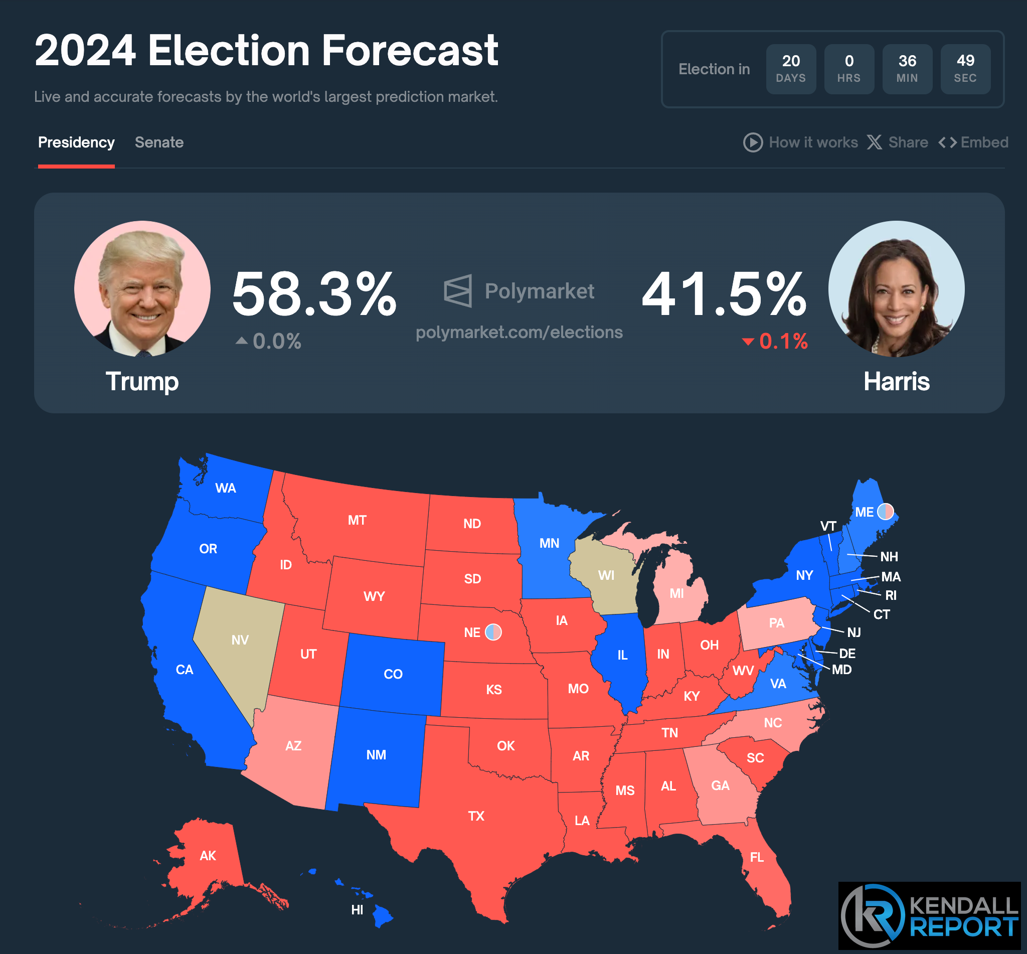 I'm pondering, and I invite you to consider, what exactly the market is pricing in. Is it anticipating a Trump win? Is that what we're seeing? I've included a Polymarket chart below to provide some food for thought.