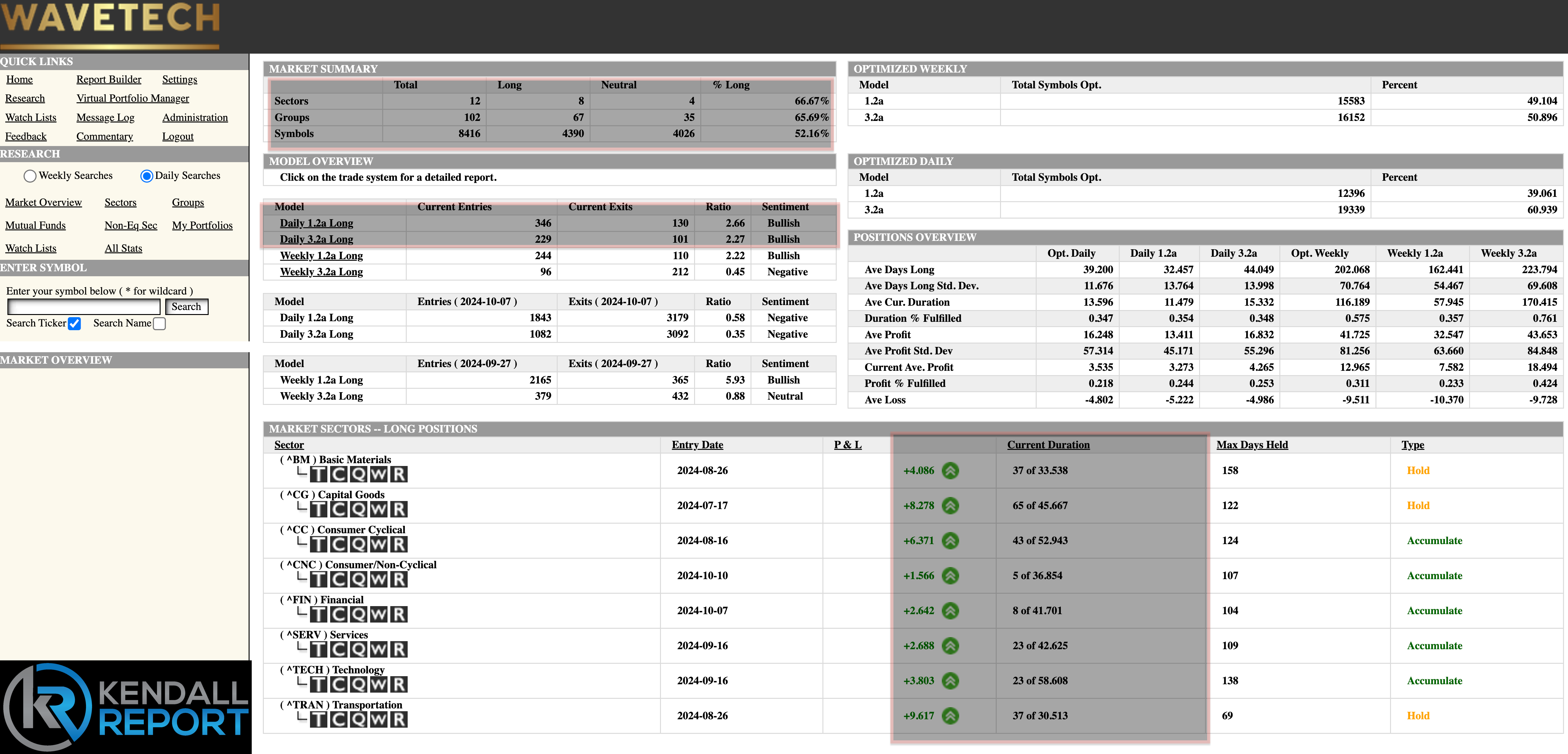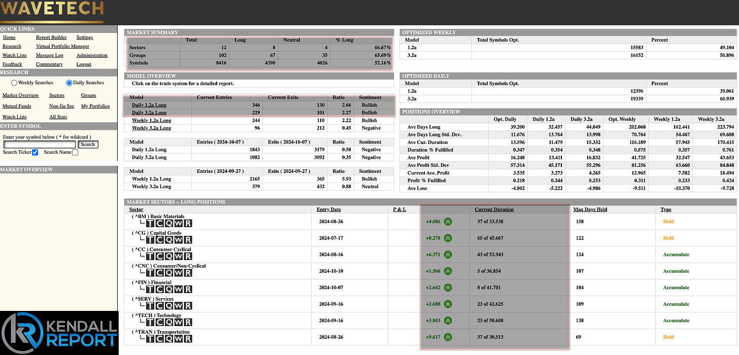 From my analysis, the general trends are still upward. The database I'll review shortly reflects a very robust environment. As I've said before, it's nearly impossible to adopt a negative stance in this market right now, given the configuration from our database to the algorithms and the technical setups across a broad range of symbols.