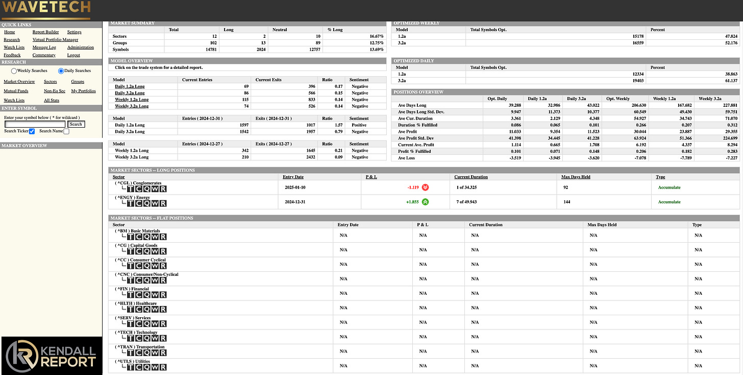 The market's technical indicators, particularly the WaveTech database, have shifted into a defensive posture, suggesting continued caution. This defensive positioning aligns with broader market sentiment as investors digest competing narratives: strong employment data, rising inflation concerns, political transition, and potential policy disruptions.