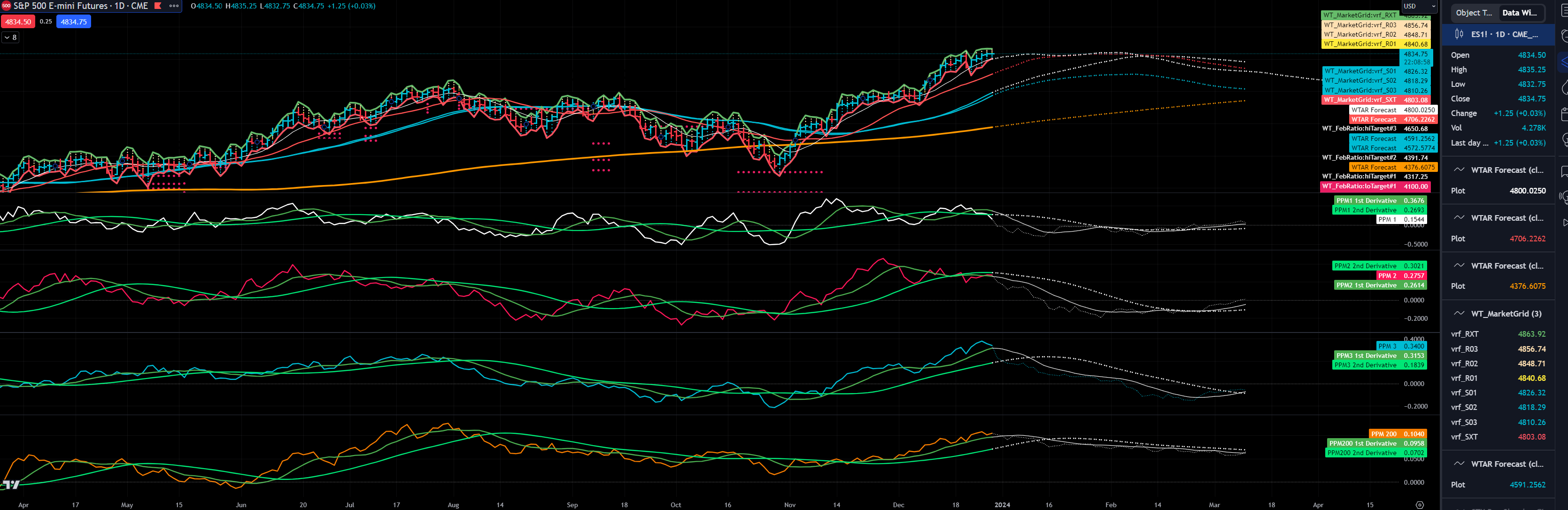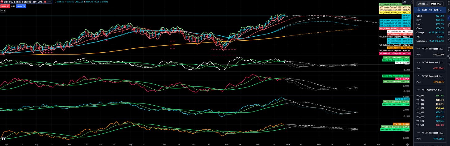 This is evident in the consistent buying and higher weekly closes over the past eight weeks. However, the wave tech database indicates a potential consolidation, despite projections of a market rise into early January, likely influenced by the 'January effect'.