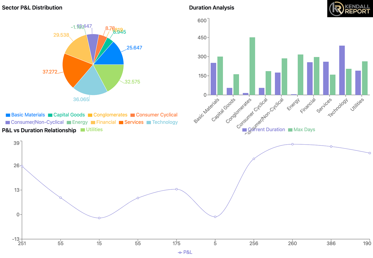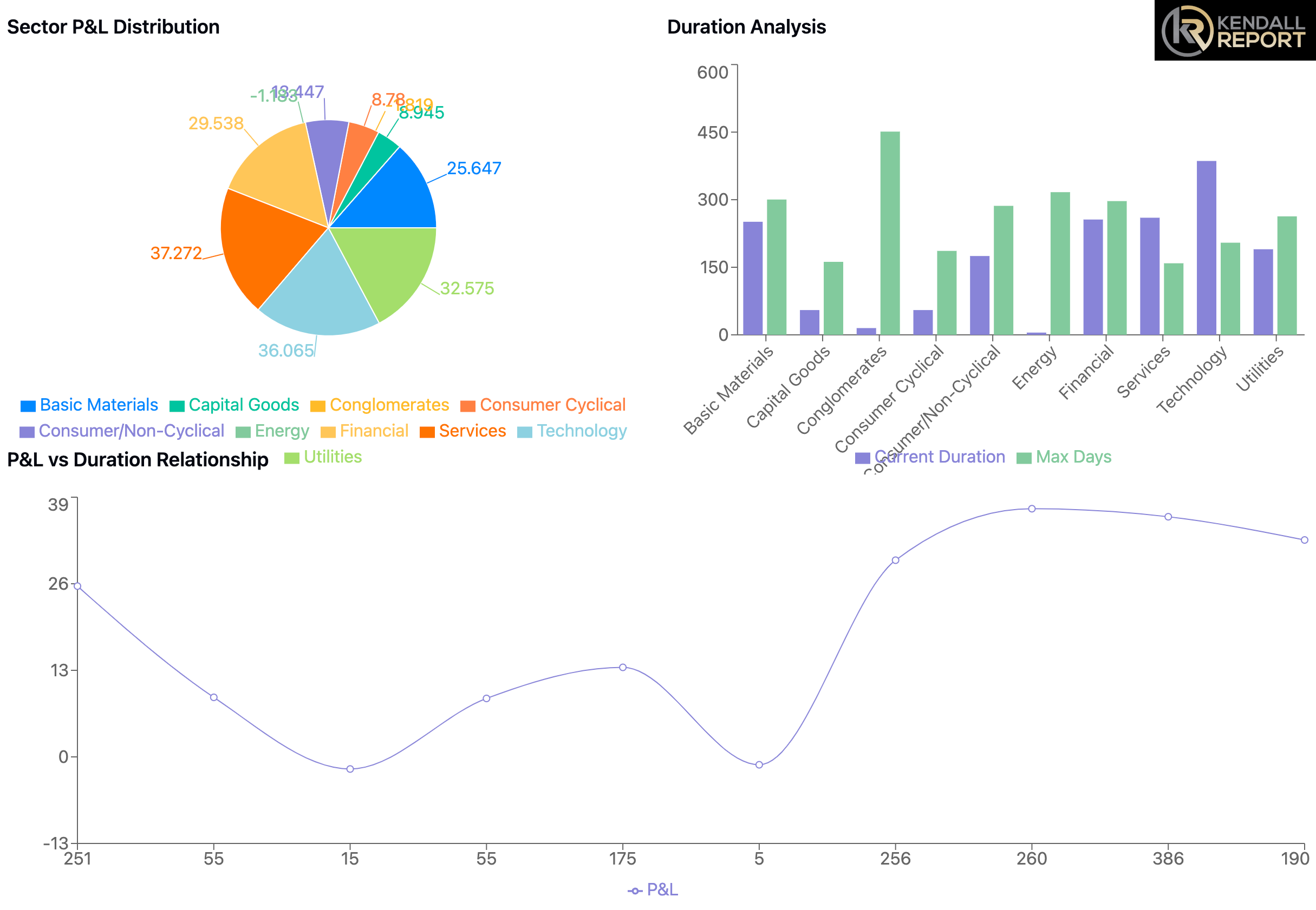 The 70% yield factor we employ suggests that while we have projected end dates for various sectors, these timelines could extend further. However, it's crucial to note that not all trades will reach even the 70% duration mark – some may conclude earlier, which affects our statistical models. This framework provides a general guideline for understanding where each market sequence is likely to conclude, though actual results may vary based on market conditions and sector-specific factors.