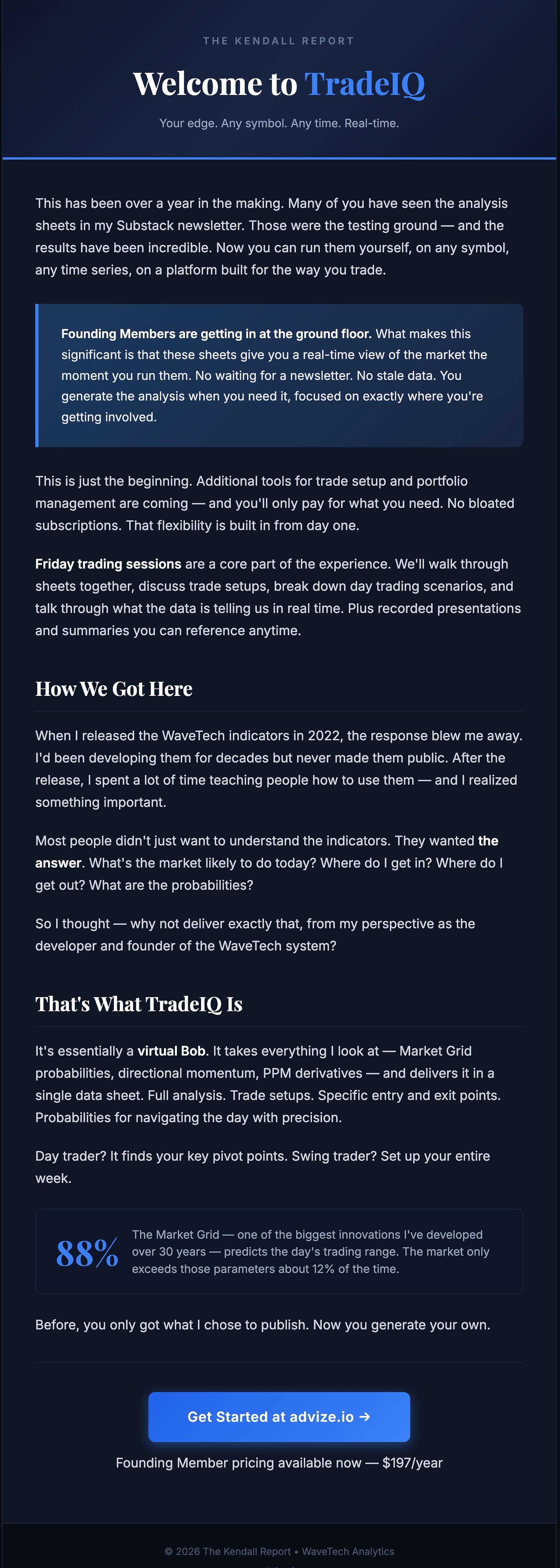 By accessing and using “The Kendall Report,” you acknowledge and agree to this disclaimer and assume full responsibility for the use of the information provided. We reserve the right to make changes to the content of this newsletter at any time without notice.